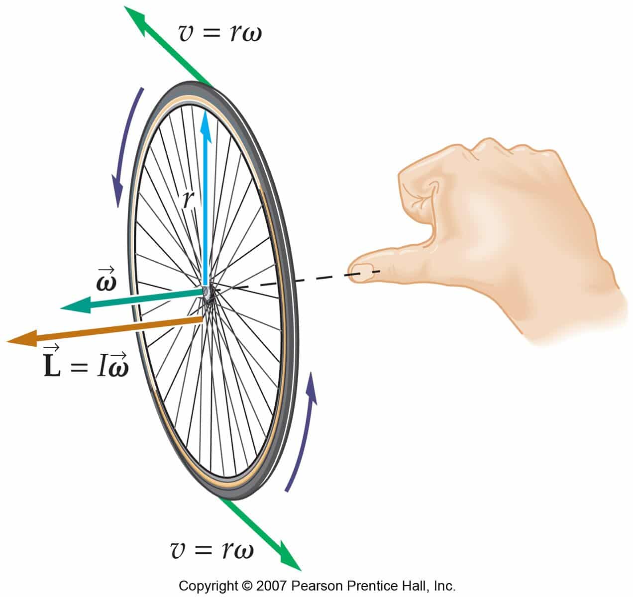 The angular speed, ω, of a revolving wheel factors along the axis of turning and also its instructions is offered by the right-hand guideline.