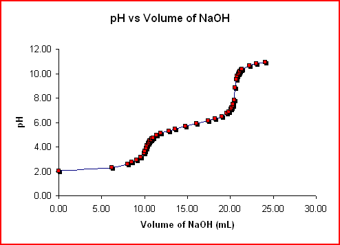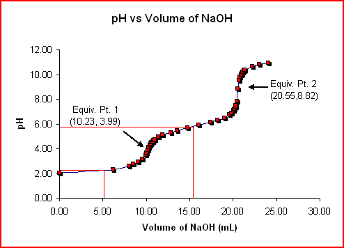 Utilizing the very same actions as above, it can be revealed that pKa2 = pH at 15.39 mL of NaOH.