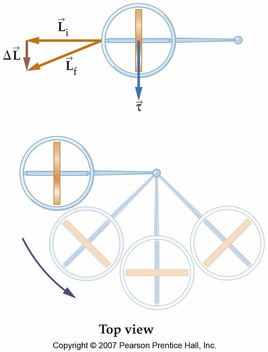 Throughout time, Δt, the angular energy adjustments by the quantity ΔL = τΔt. This triggers the angular energy vector as well as the gyrscope in its entirety to turn counterclockwise.