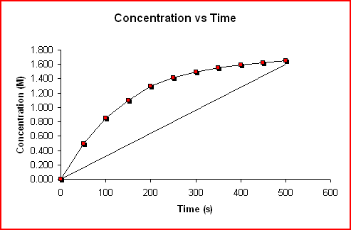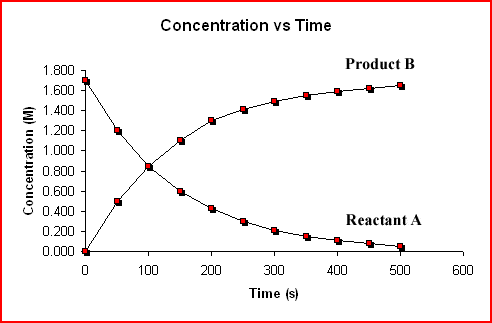 Ave RateB = Δ [B]/ Δt = (1.6 M – 0 M)/( 500 s – 0 s) = 0.0033 M/s