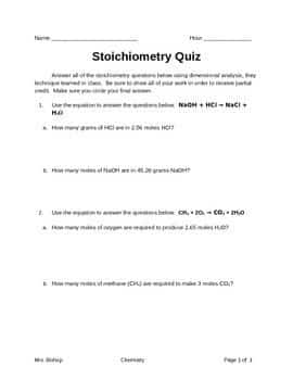 Stoichiometry Quiz